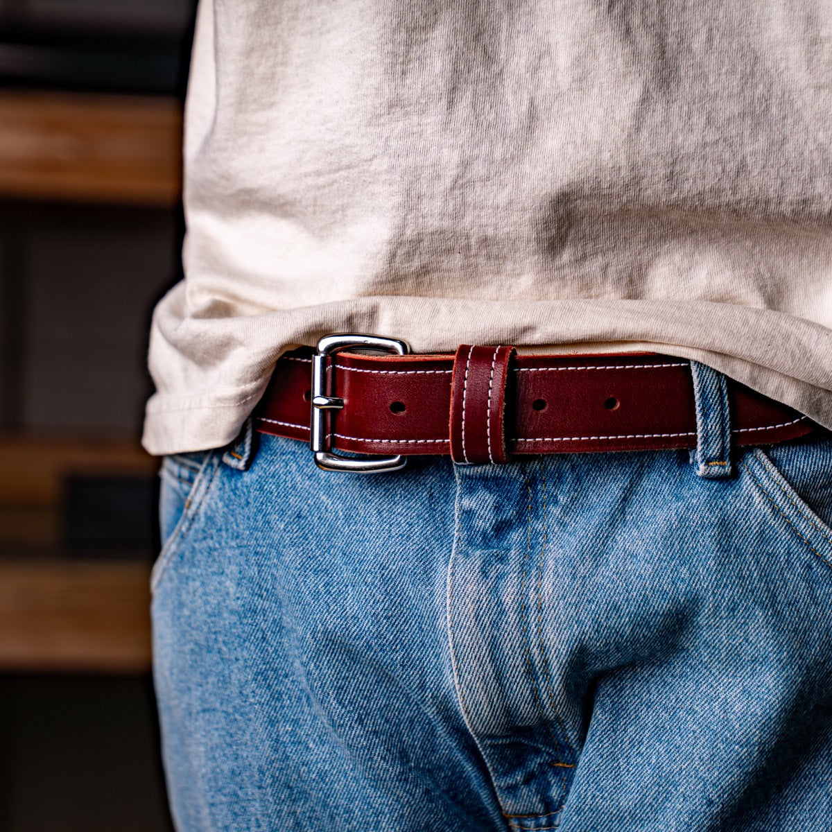 Nice sturdy leather with a good quality buckle, the perfect belt in my opinion. Don't waste your time on cheaper belt that cant handle the weight of loaded tool bags.