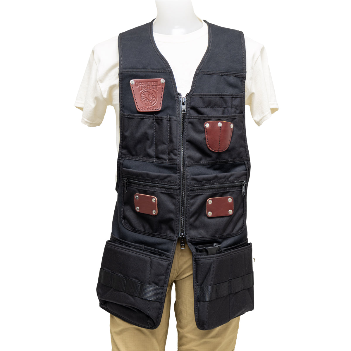 The Oxy Pro Zip Vest is engineered for tradespeople who need comfort, organization, and freedom of movement on the job. Its zippered front makes for quick on/off, while back adjustments provide a secure, customized fit. Wide-shoulder, open-back design promotes airflow and reduces fatigue. Equipped with two 2003 Oxy Tool Shields for safe storage of sharp tools like knives and chisels, plus roomy cargo pockets and integrated pouches.