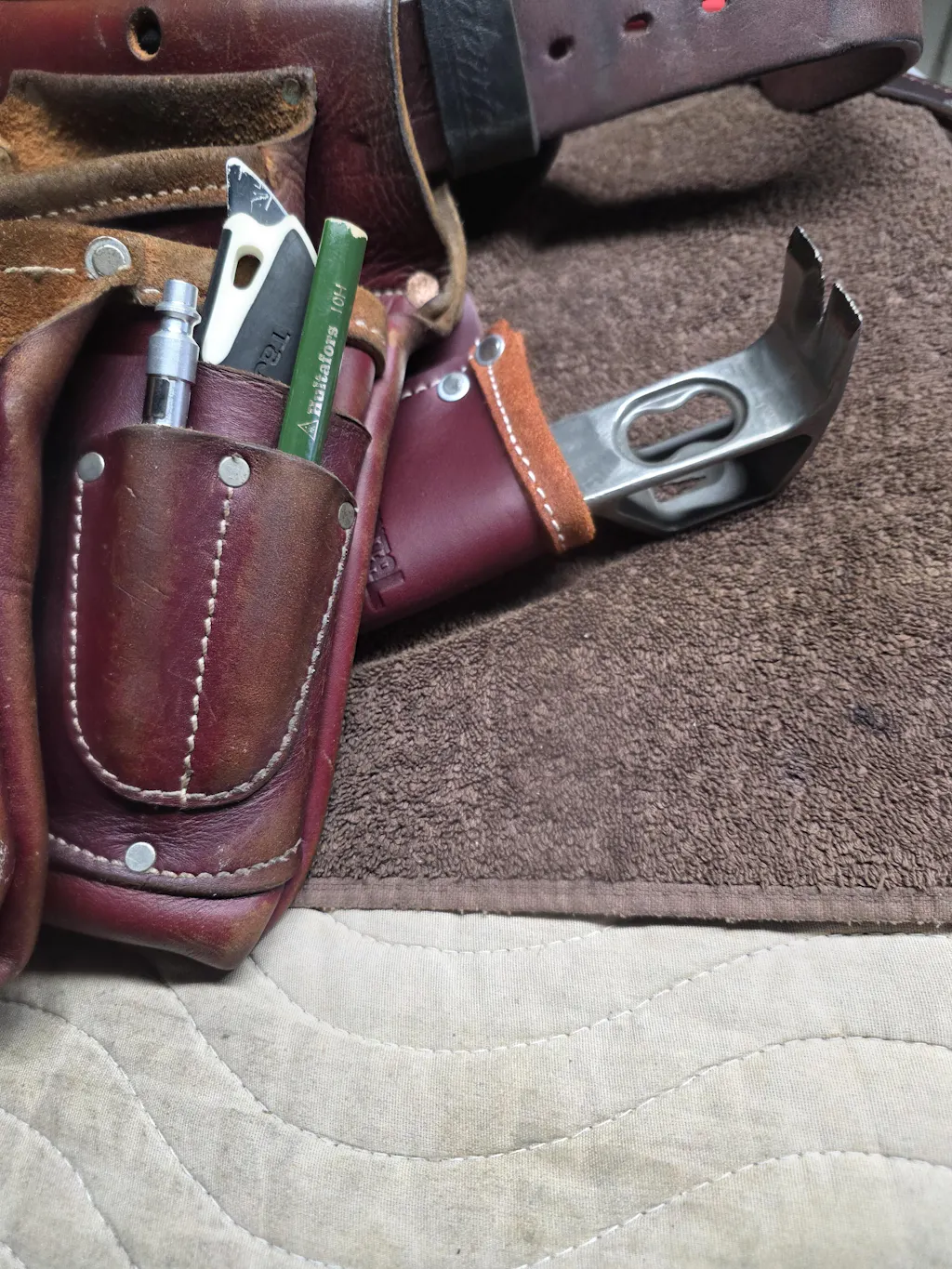 This handcrafted leather Cat’s Paw Sleeve Kit offers a clean, low-profile solution for tradespeople who prefer their tool tight to the body. Easy to install, this sleeve mounts to your existing pouch, vest, or tool rig using the included copper rivets and step-by-step instructions.