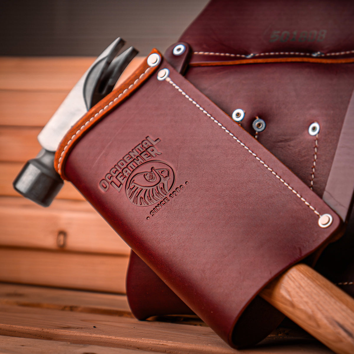 The Leather Hammer Sleeve Kit is a handcrafted, USA-made solution for tradespeople who prefer a tighter carry. Designed from durable 8 oz leather, this sleeve allows you to mount your hammer directly to your pouch, vest, or rig for a low-swing, snug fit.